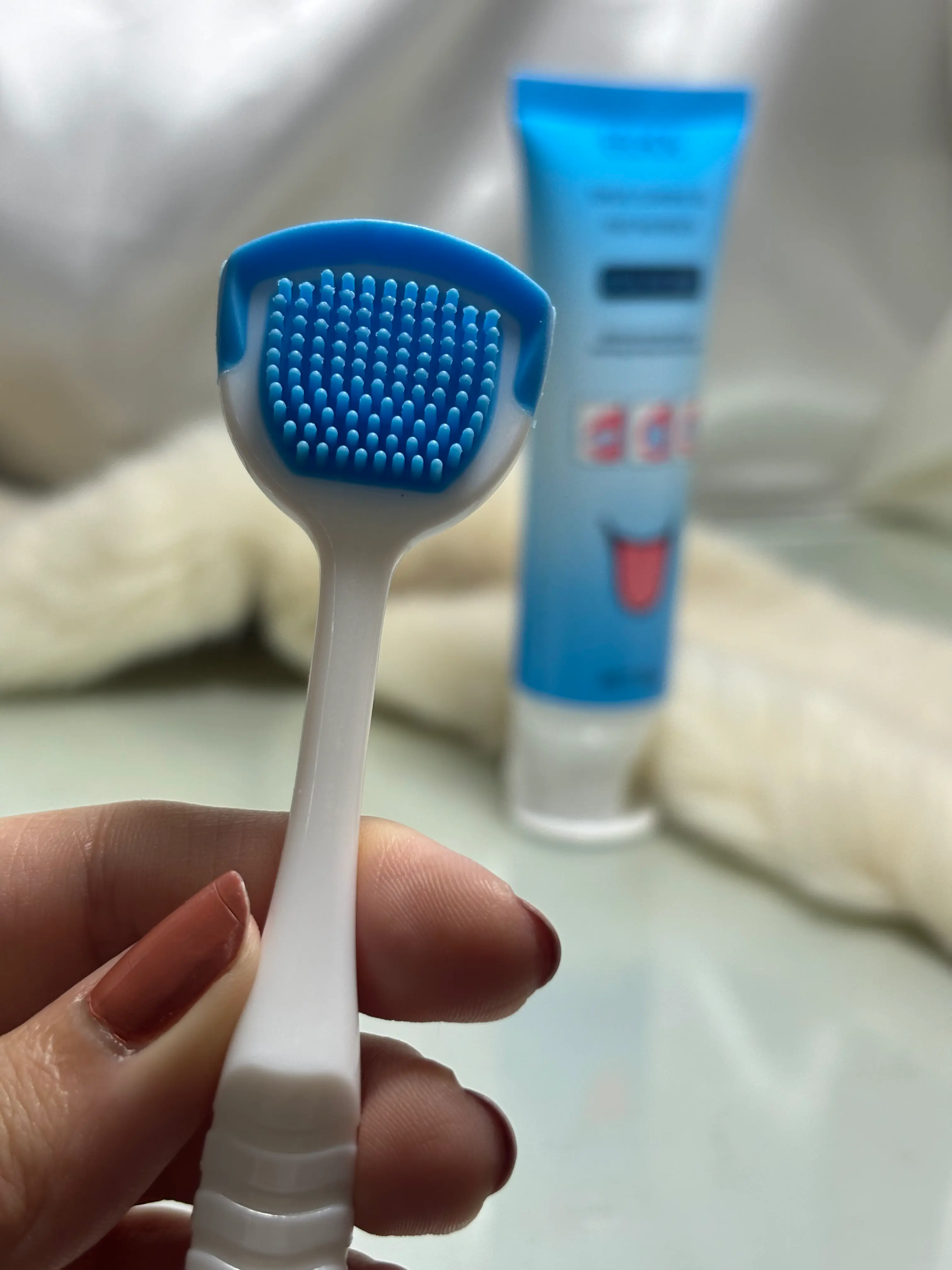 براشش دو سمت داره که یه طرفش مخصوص تمیزی سطحی و سمت دیگش زبونتو عمقی تمیز میکنه